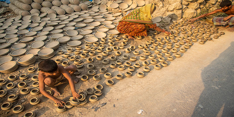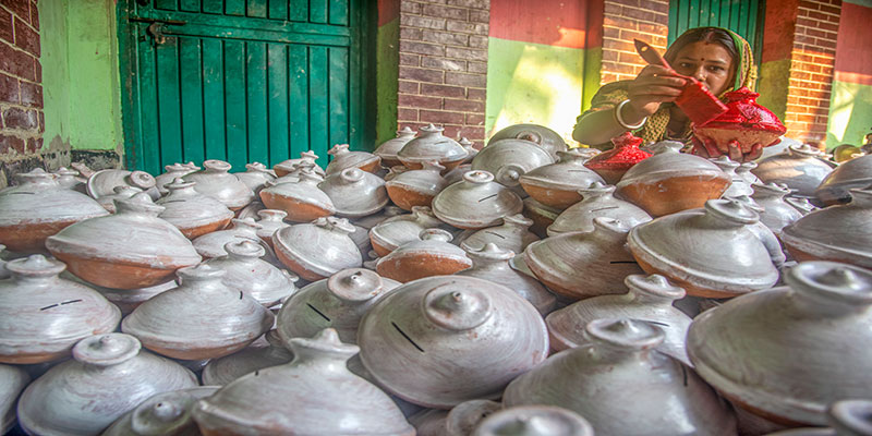 বাংলার চিরায়ত লোকউৎসব চড়ক মেলা ও চৈত্র সংক্রান্তি উপলক্ষে প্রতি বছরই গ্রামবাংলা হয়ে ওঠে উৎসবমুখর। এর পরদিনই বাঙালির প্রাণের উৎসব পহেলা বৈশাখ। এই দুই উৎসবকে কেন্দ্র করে মৃৎশিল্পীদের দম ফেলার সময় নেই। মাটির তৈরি বিভিন্ন খেলনা ও তৈজসপত্র তৈরি, শুকানো ও পোড়ানোর কাজ শেষ করে এখন চলছে রঙের ছোঁয়ায় সেগুলোকে আকর্ষণীয় করে তোলার ব্যস্ততা।
